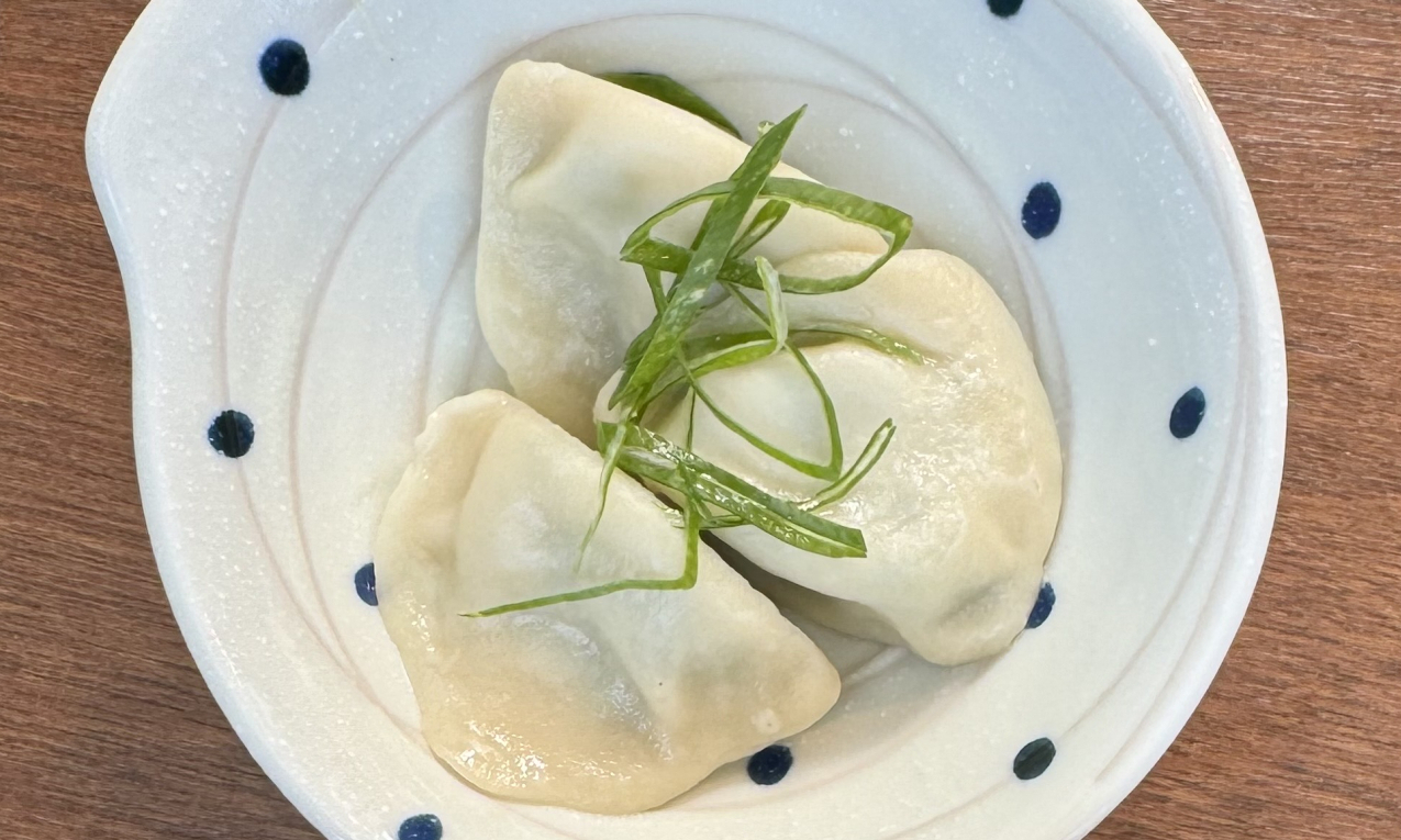 所沢の老舗、深井醤油の醤油を使ったオリジナルタレを使用したもちもち水餃子